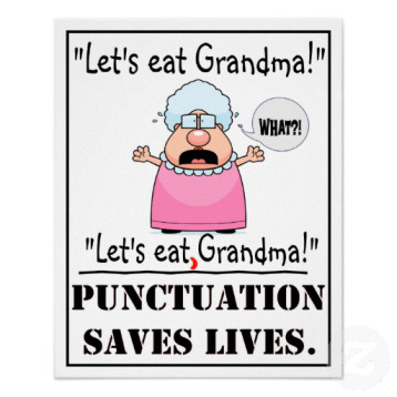 I’ve seen quite a few memes over the last year or so that highlight the importance of properly placed punctuation (say that three times fast 😉 ). Here are a couple of my favorites…